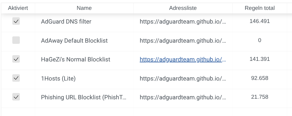 I recently installed a Adguard Home server on one of my idling IPv6 boxes. If you want to use it too for ad-blocking, add this address 2a00:f48:1000:48d::1 as your DNS server. Yes, it’s IPv6 only. Here are the activated lists: